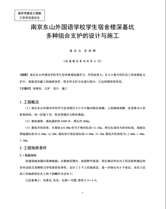 南京東山外國語學(xué)校學(xué)生宿舍樓深基坑