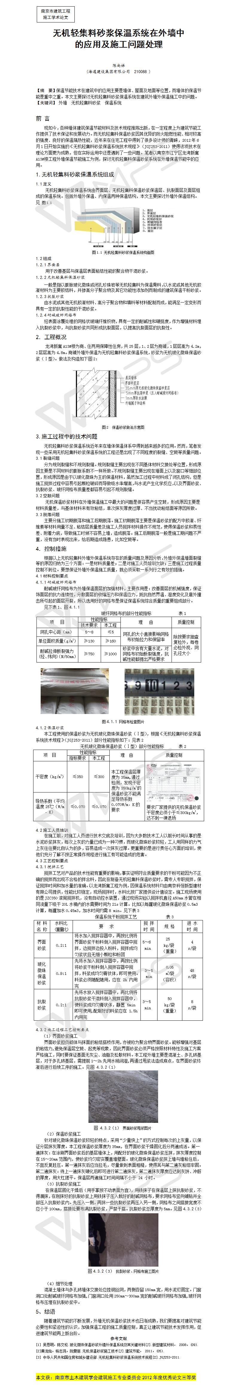 無機輕集料砂漿保溫系統(tǒng)在外墻中的應(yīng)用及施工問題處理